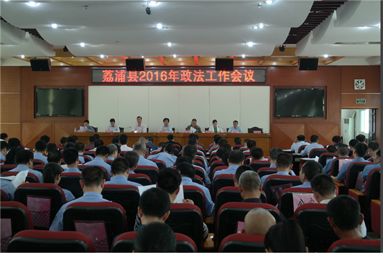 2016年4月15日,荔浦县召开全县政法工作会议,县委书记、县委常委、政法委书记及联系政法工作的其他县领导出席会议。县政法委全体人员、县维稳组全体领导、县综治成员单位主要领导、县法院、检察院、公安局、司法局中层以上正副职领导、各乡镇党委书记、人大主席及维稳办副主任共两百多人参加了会议。