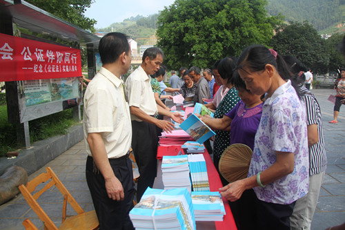 8月28日宣传日活动当天,为了使宣传活动有声有色,局领导及办公室、法律援助、宣传、基层等相关股室参加了本次宣传活动。我局结合实际,在局服务大厅打出电标横幅一条,公证处将贴近群众切身利益的继承、房屋买卖、委托等公证知识印制成公证宣传资料1000余份,并与印有“公证伴你同行”的草帽800多只共同发放给老百姓,设立公证咨询台,为群众提供公证法律咨询50余人次。活动当晚白天的宣传活动情况在龙胜县电视台及时播放,极大地提高了公证的社会知晓率。