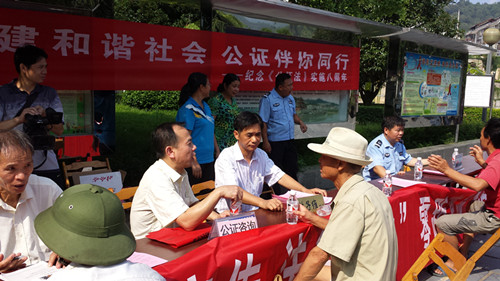 2013年8月28日是《中华人民共和国公证法》颁布八周年纪念日,为进一步宣传贯彻《公证法》,扩大公证工作的社会影响,树立公证工作的良好形象,根据区司法厅公证管理处和广西公证协会桂司公(2013)10号文件精神,我局于8月28日在县城热闹繁华的滨江公园开展了以“构建和谐社会,公证伴你同行”为主题的《公证法》宣传活动。