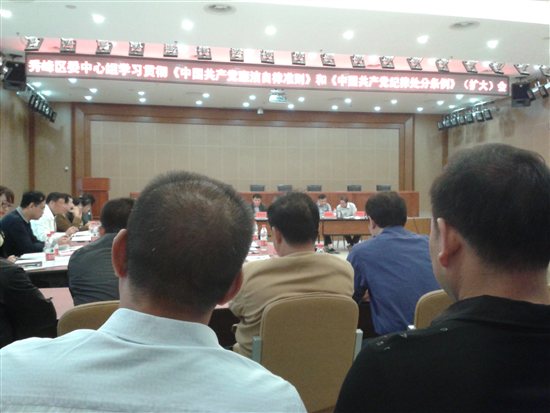 ??? 图为10月30日,秀峰区司法局副科以上领导干部和各司法所所长参加秀峰区委组织的区委中心组学习贯彻《中国共产党廉洁自律准则》和《中国共产党纪律处分条例》(扩大)会。
