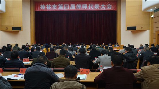 2016年2月21日,桂林市律师协会召开桂林市第四次律师代表大会,共有106名律师代表参加,市司法局全体班子成员,各县区分管律师工作的司法局领导作为特邀代表列席了会议。会议由市司法局党组成员、副局长秦昕同志主持,副市长仇祖和同志、市司法局局长肖刚同志、区律师协会副会长李杰同志出席会议并发表了热情洋溢的讲话。