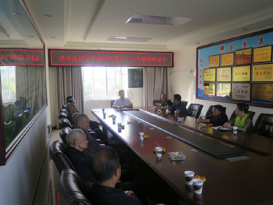 在2017年重阳佳节即将来临之际,恭城县司法局举办了“关爱老年人 欢庆十九大”为主题的敬老月活动,10月27日上午组织该局退休干部召开学习党的十九大精神座谈会,深刻领会十九精神,传达党委、政府对老年人的关爱、关心。