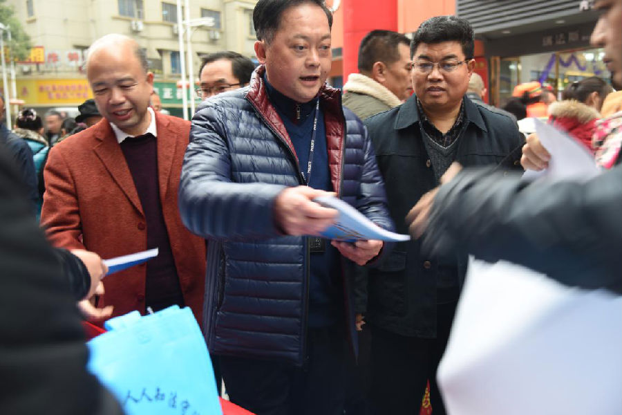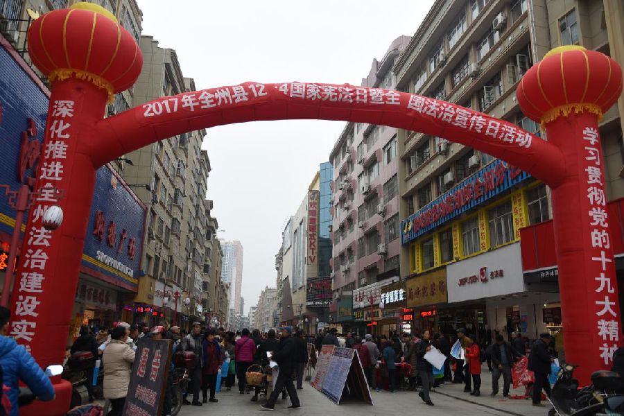 2017年12月4日是国家宪法日,也是全国法治宣传日。2017年12月4日上午,全州县在步行街开展了大型普法宣传活动。全州县司法局机关全体干部职工及全县30多个普法成员单位参加了此次活动。副县长县公安局局长谢俊、县人大副调研员王荣利、县委宣传部副部长唐宏、县委政法委副书记彭治璋等领导亲临现场指导工作。